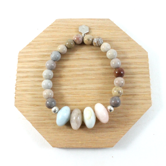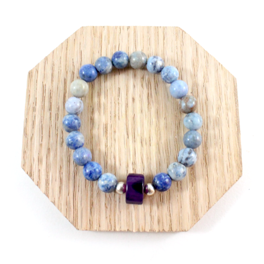 Green Agate w/ Amethyst Bracelet - Lotus Collection