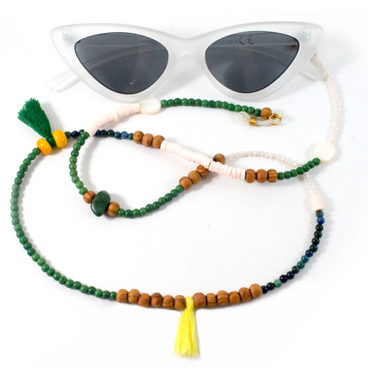 Green Agate & Azurite w/ Wood Beads - Eyewear Chain