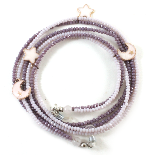 Pink & Purple Crystal Double Strand W/ Stars & Moons Charms - Eyewear Chain