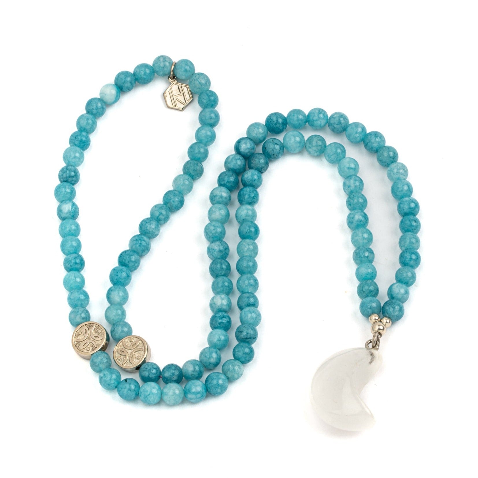 Blue Agate with Clear Quartz Moon Necklace | Luna Collection